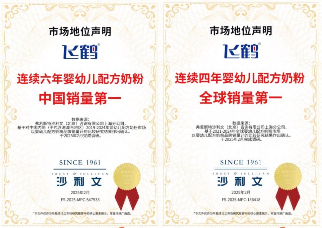 (飞鹤连续六年蝉联中国婴配粉市场销量第一,连续四年位居全球婴配粉销量榜首)